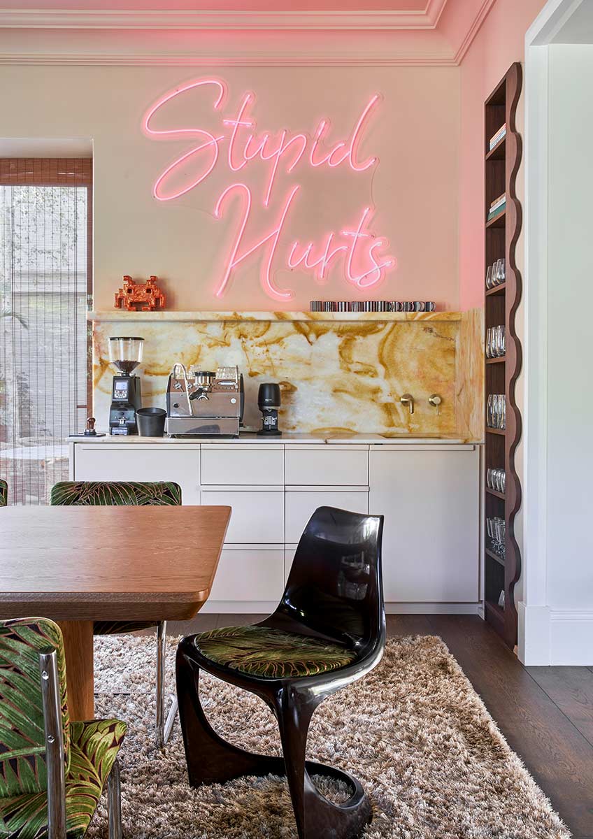The kitchen was then extended into a softer, conservatory like room, drawing in the garden and dissolving the threshold between inside and out. This, in turn, released the original kitchen into a generous dining room with a separate coffee station, now light filled and oriented towards the TV room and covered terrace.