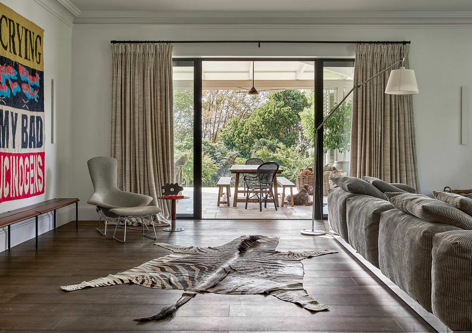 A unique home filled with treasured art, vintage finds, and reinterpreted existing pieces and spaces, where quirky fabrics and custom furniture add character throughout.