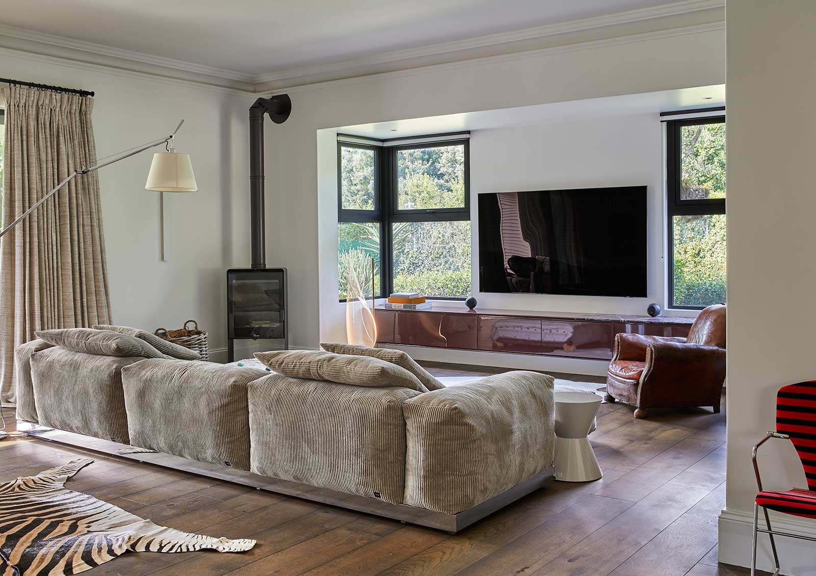 A warmer material language runs throughout. Screeded floors were replaced with timber, introducing softness and continuity underfoot.