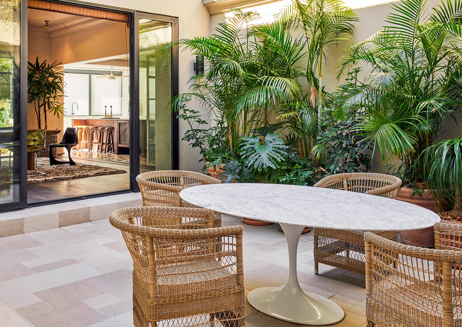 Outwardly, the home opens with ease. A custom designed, almost floating, Dekton clad barbeque and reworked patio extend the interiors into the landscape, supporting relaxed seasonal living and effortless gathering, while giving the homeowner an uninterrupted view of Table Mountain.